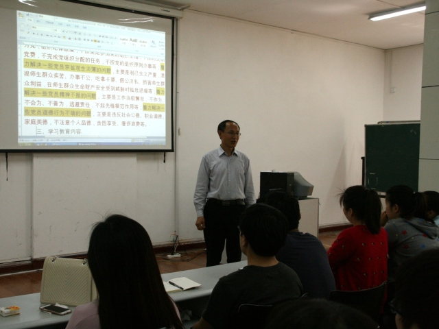 首先刘书记向大家阐述了开展“两学一做”学习教育的重大意义,并详细解释其总体要求,强调“基础在学,关键在做”。针对“两学一做”着力解决的党员五大问题,刘书记结合实际案例对其进行生动讲述。随后,他详细讲解此次学习教育的内容和方法措施,突出告诫在场全体党员要做讲政治、有信念,讲规矩、有纪律,讲道德、有品行,讲奉献、有作为的合格党员。
