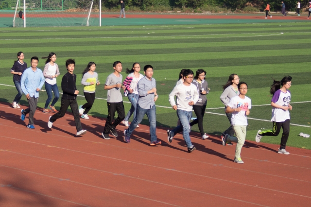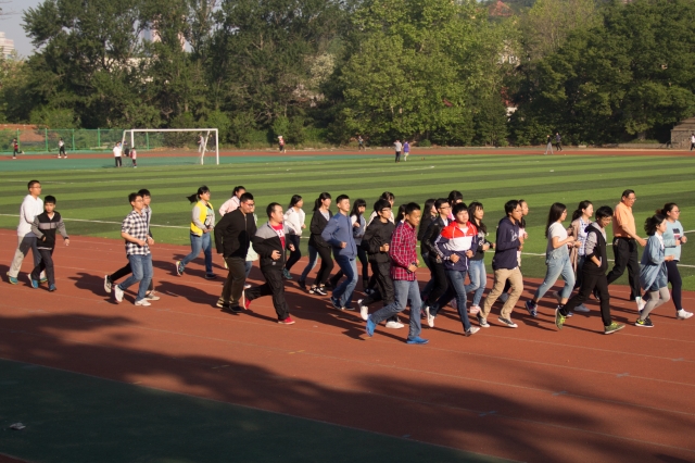 清晨,学生结伴而行,准时到达了运动场,并以班级为单位排成队列。在清点人数后,全员到齐的班级开始了晨跑活动。围绕操场两周的长跑中,平日里缺乏锻炼的学生们气喘吁吁,却也尽自己最大的努力紧跟排头的步伐,挑战着自我。经过这八百米的磨练,学生们脸上起床时的萎靡不振早已烟消云散,取而代之的是青年运动者的活力四射。