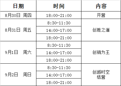 2018年8月30日至9月2日,共40课时,具体时间与课程安排如下:
